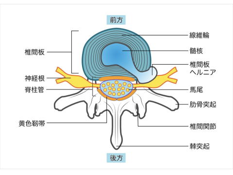 椎間板の後方が破れて、髄核が飛び出してしまう状態。